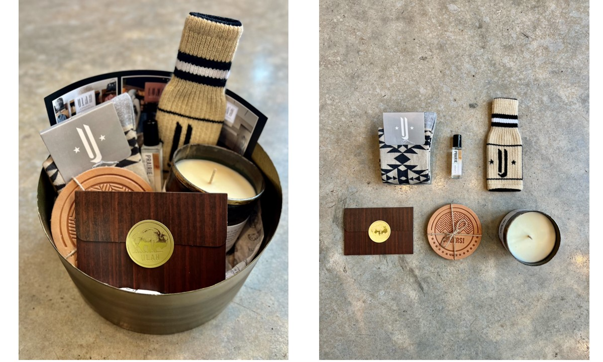 Enter for a chance to win a ULAH gift basket. The basket includes socks, prairie candle, prairie fragrance roller, beverage sweater, leather coasters and a $250 ULAH gift card!